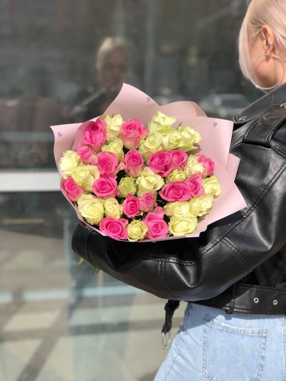 Красивый букет из свежих роз Кения 50 см. В букете 25 роз.