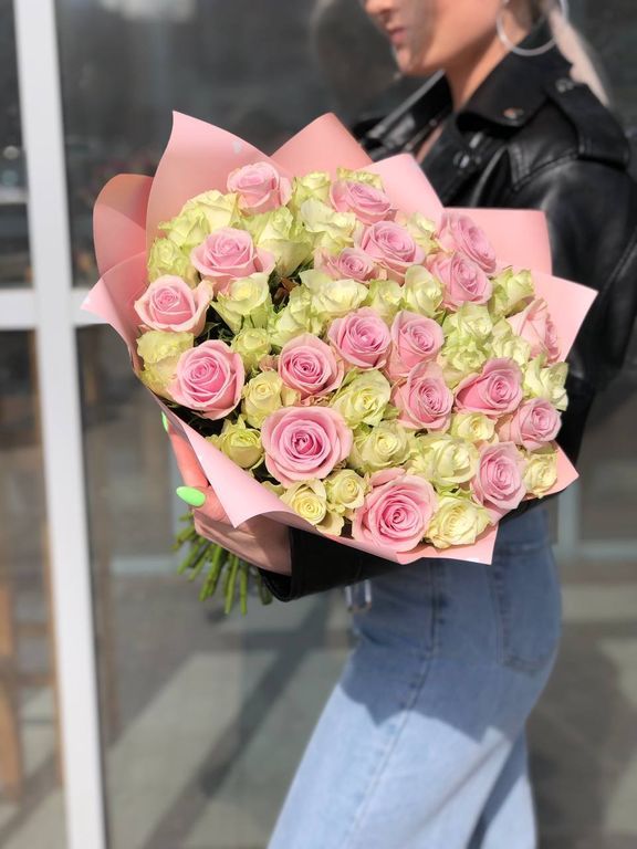 Нежный букет из 51 розы Кения 50 см для вашего события.