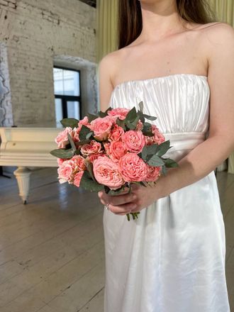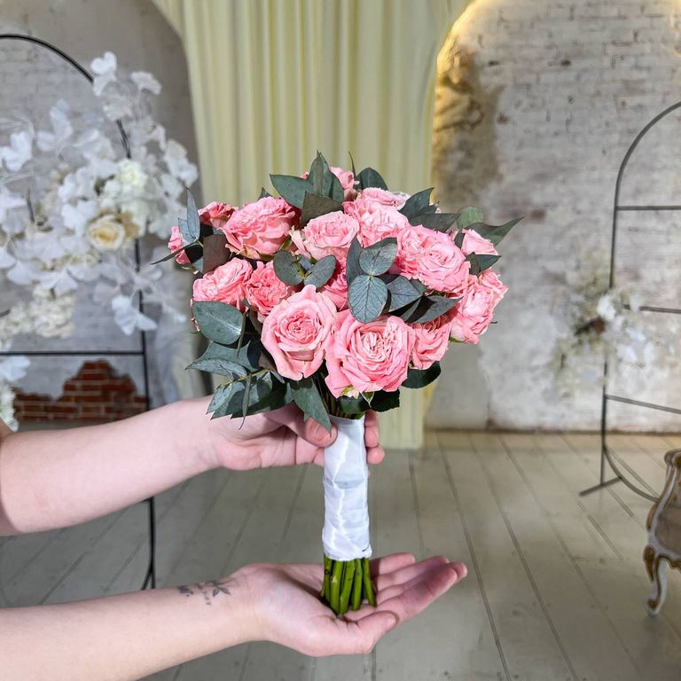 Нежный букет невесты из кустовых роз для вашего торжества.