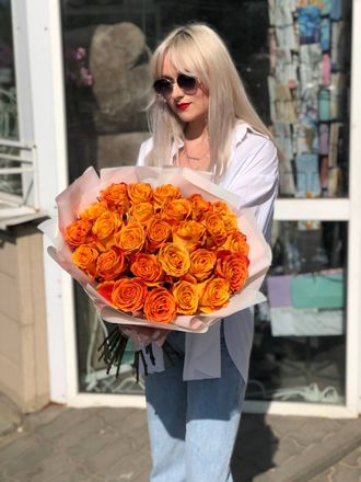 Яркий букет Эквадорских роз 60 см 25 шт.