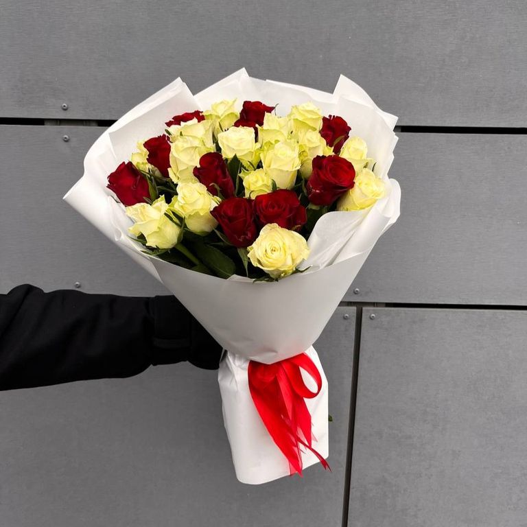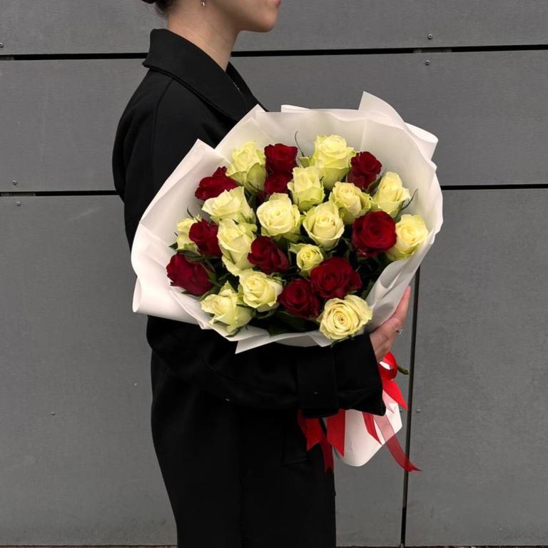 Классический букет из 25 небольших кенийскиз роз, с доставкой по Туле и области