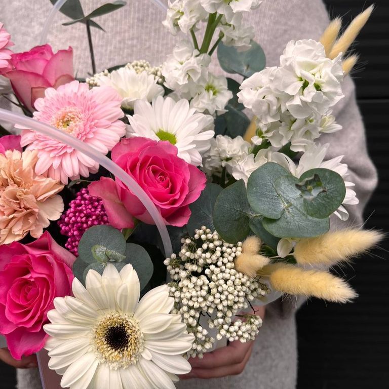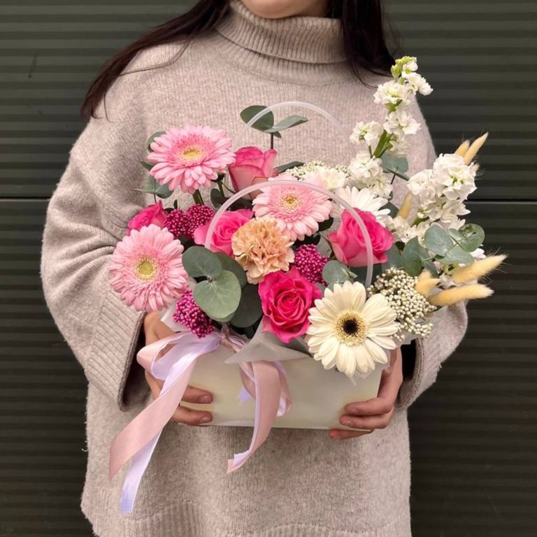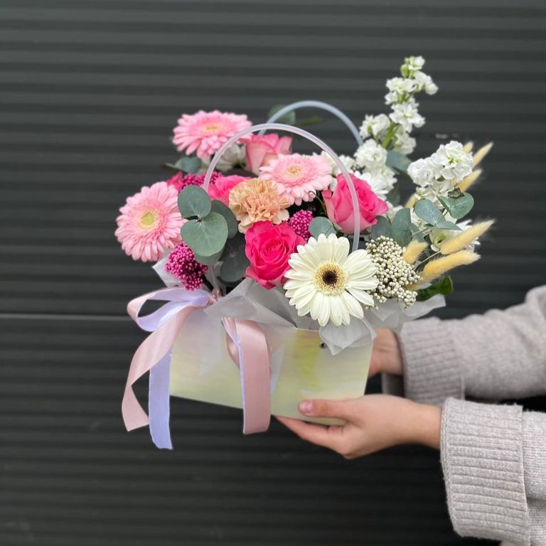 Нежнейшая композиция с розами, герберами и маттилой с доставкой по Туле и области.