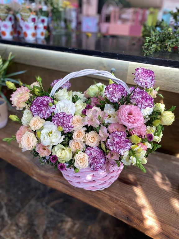 Нежные цветы в корзине - отличный вариант на день рождения.