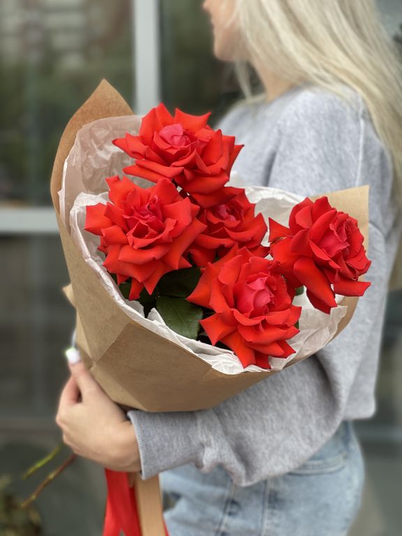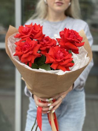 Яркий букет из французских роз на праздник или в виде комплимента.