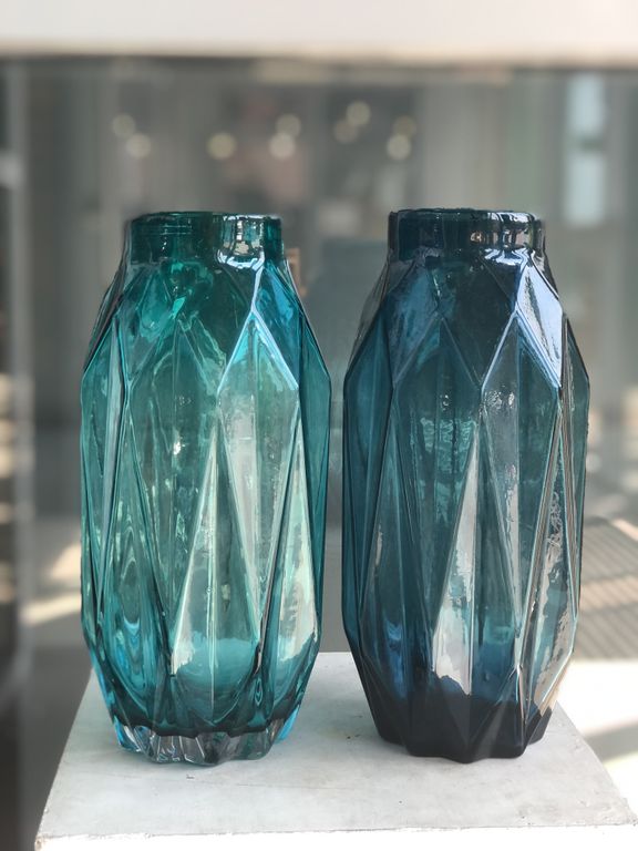 Вазы стекло в необычных оттенках морской волны для вашего интерьера, подойдут для живых и искусственных цветов.